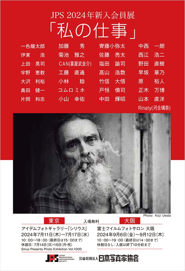 公益社団法人 日本写真家協会(会長 熊切大輔)は、現在プロ写真家1219名を擁し、種々の活動を行っております。その事業の一環である、恒例のJPS2024年新入会員展「私の仕事」を今年も開催いたします。今年入会した様々な分野で活躍する29名が出展する、彩り豊かな会員展となります。