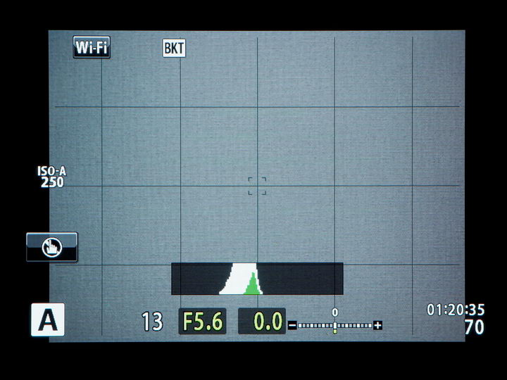 フォーカスブラケットが設定(Onに)されると、モニター左上にブラケット機能を示す「BKT」のアイコンが表示される。ただし、何のブラケットか(AE、WB、FL、ISO、ART、Focus)までは判別できない。