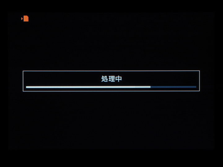 「深度合成」モードでの8枚の連続撮影が終了すると、カメラ内での合成処理が始まる。これはその際に表示される画面で、この表示が出てから10秒強で処理が終了した(時間は条件によって変わるかも)。