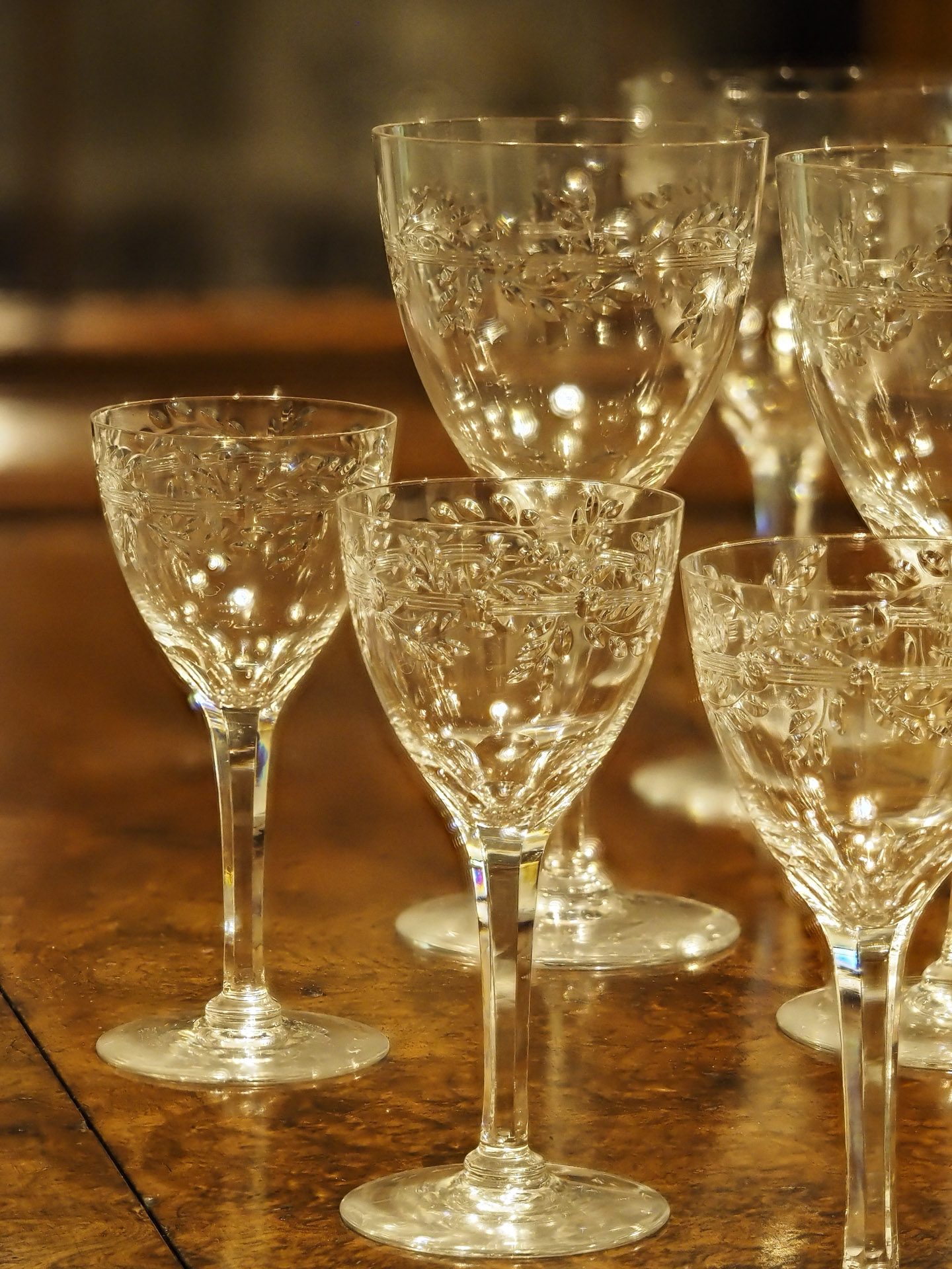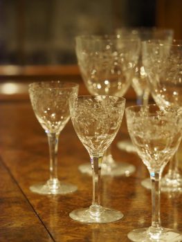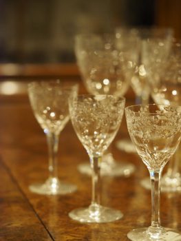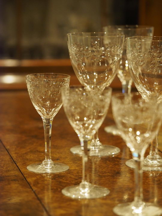 M.ZUIKO DIGITAL ED 60mm F2.8 Macroを使った室内撮影。絞り値は開放のF2.8に設定。フォーカスステップは5(初期値)に設定。ピント位置は前列中央のグラス本体(いちばん手前の部分)で、深度合成モードでは、そこ位置を起点にフォーカスブラケットがおこなわれる(最初のピント位置→手前→奥)。