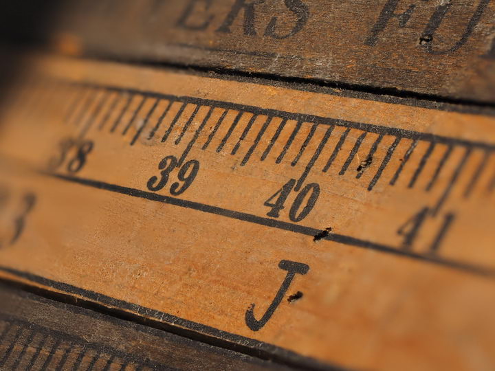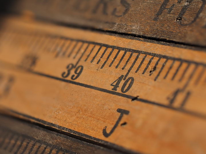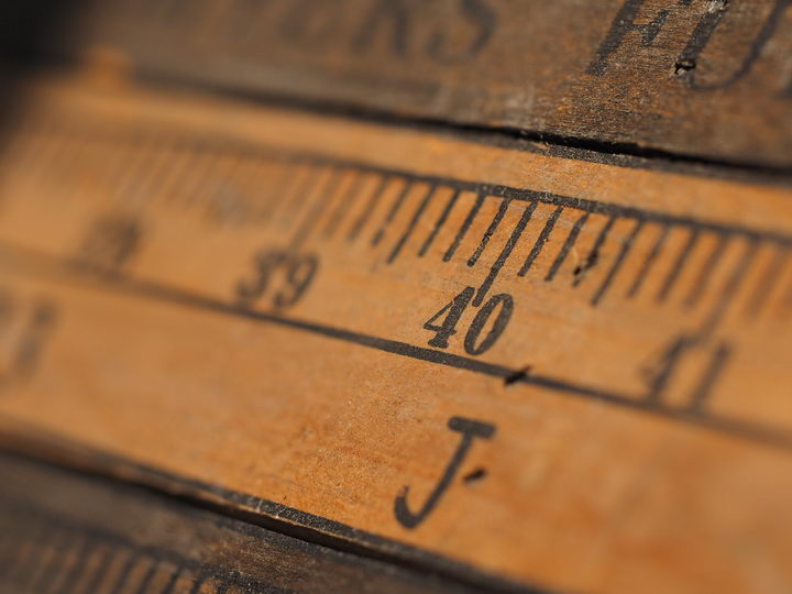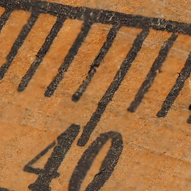 木製のスケールの一部分を、M.ZUIKO DIGITAL ED 60mm F2.8 Macroを使って高倍率マクロ撮影。通常撮影での被写界深度の浅さが印象的。ピントを合わせたのは、40を示す指標(縦線)の位置。絞りは開放のF2.8で、フォーカスステップを3段階に変えている。初期設定値の「5」では、一見すると問題ないようだが、拡大して指標付近をチェックしてみると、ピントが合ってない範囲がストライプ状に続いているのが確認できる。最小値の「1」では、そんな不自然な描写が見られないが、被写界深度はさほど深くなっていない(通常撮影と比較して)。最大値の「10」では、5の時よりも被写界深度は深まっているが、ピントが合ってないストライプ状の描写は、さらに目立つようになっている。