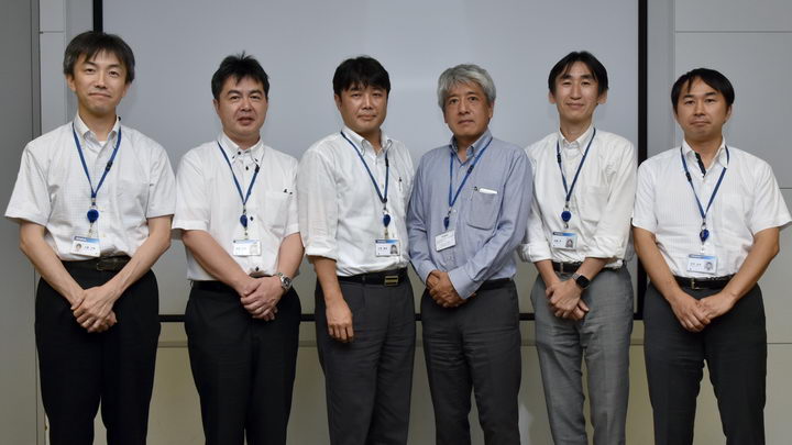 質疑応答に対応して頂いたオリンパス(株)スタッフ。左から、日暮正樹氏(映像システム開発2部 グループリーダー)、高瀬正美氏(映像商品開発2部 部長)、片岡摂哉氏(映像開発本部 副本部長)、寺田利之氏(映像マーケティング部 部長)、加藤茂氏(光学システム開発3部 部長)、志村和彦氏(画像システム開発2部 グループリーダー)