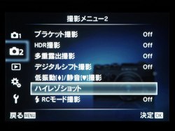 ハイレゾショットは「撮影メニュー2」から設定。 |