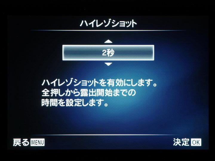 シャッター全押しから露出開始までの時間設定は0秒~30秒の範囲内。 |
