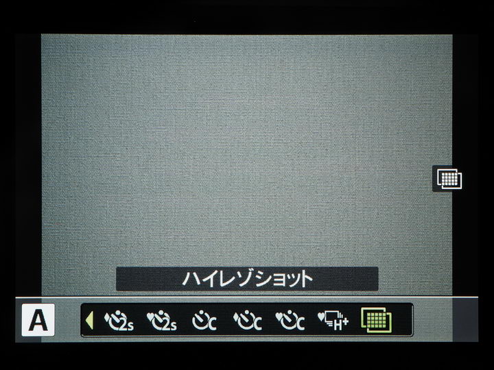 ハイレゾショットを設定すると、モニター画面の右端中央にアイコンで表示される。 |