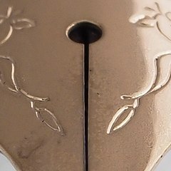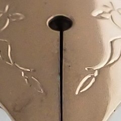まず、E-M5 MarkIIでの小物撮影の結果です。望遠マクロレンズ「M.ZUIKO DIGITAL ED 60mm F2.8 Macro」を使った万年筆の写真で、先端部のペン先にピントを合わせています。ちなみに、こういった小物のクローズアップ撮影では、近距離でも描写性能の高いマクロレンズと、正確なピント合わせが必要になります。そのペン先の部分を切り出して比較してみます。E-M5 Mark IIの場合、通常撮影では16Mになり、ハイレゾショットでは40Mの画像になるので、同じ範囲を切り出してもピクセル数は変わってきます。そこで、同じ範囲を切り出した40Mの画像を、16Mの切り出し部分と同じピクセル数(240×240ピクセル)にリサイズして、その描写を比較してみました。縦に伸びる切れ目や、左右の掘られた模様。ハイレゾショットからの切り出しの方は、こういった部分のエッジがより明確になっているのがわかります。