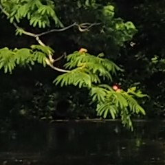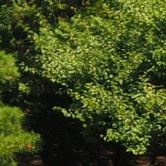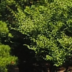 まずは、動きのない所の部分切り出しを比較してみましょう。ここでも万年筆の時と同様の方法で、同じ範囲を切り出した50Mの画像を、20Mの切り出し部分と同じピクセル数(240×240ピクセル)にリサイズして描写を比較してみます。50Mのハイレゾショットからの切り出し画像の方が、密集する木の葉の細部がより緻密に描写されています。