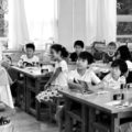 今回は美術の時間を使ってプログラムを実施した。1回目は写真の仕組みを知ることを目的に、35mm一眼レフカメラとフィルムを見せながら、「写真を撮るには最低3つの物が必要ですが、それは何か?」と問いかけてみる。レンズとフィルム、という答えは即座に出たが、最後のカメラはなかなか答えが出なかった。しかし、デジタルカメラや携帯電話であっても、写真を撮る基本的な仕組みは同じであることを児童は興味深く聞いていた。撮影時の注意を説明し、1コマ目に児童自身の顔写真をペアを組んで撮り合った。残り26枚は「家族」をテーマに約二週間で撮ることにする。