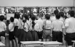 2016年4月に4校が統合された小学校であり、開放感あふれる広々とした校舎と木造の香りに圧倒された。1回目は写真の記録性や楽しみ方などについて話し、レンズ付きフィルムで顔写真をペアで撮り合い二コマ目以降は夏休みの課題とした。