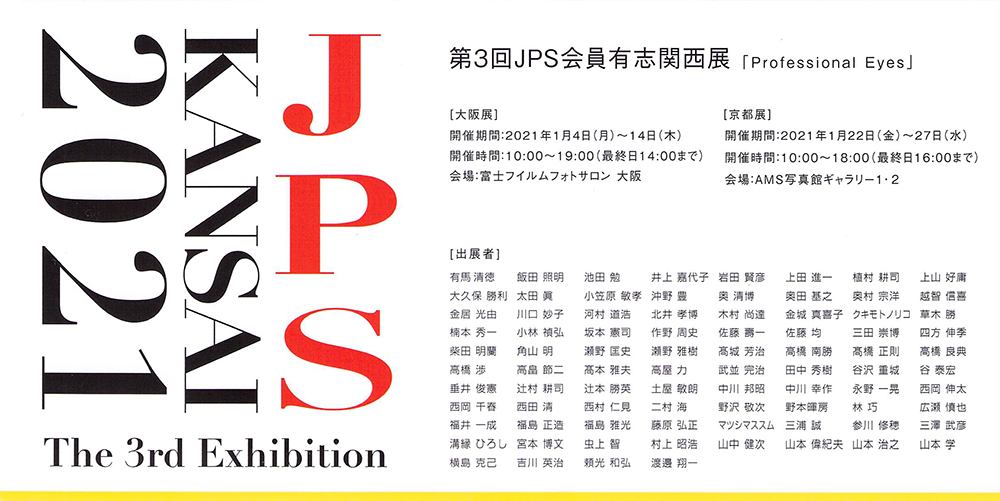 公益社団法人 日本写真家協会(JPS)に所属する、関西を中心とした全国のJPS会員83名の作品を展示いたします。