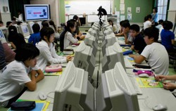 パソコンを使って写真基礎学習。緊張のためか殆ど質問がでなかった。一転テスト撮影では、先生の協力を得て理科室人体模型・飼育室・教室・施設や友だちなどを楽しく写していた。主な撮影を土日の宿題とした。休日に過ごした家族、街、遊びをテーマとした多くの写真が出来上がった。