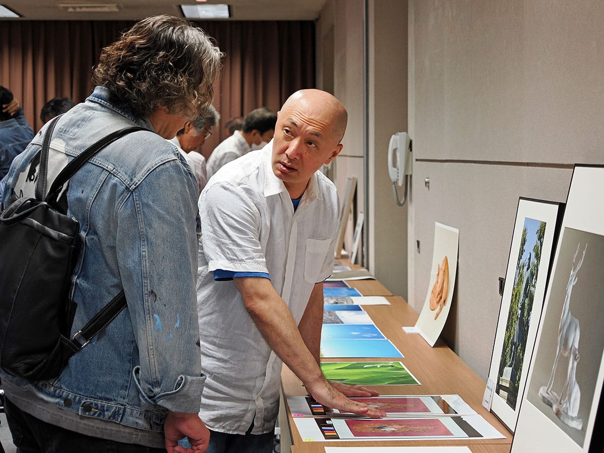参加者によるプリント確認の後は、株式会社堀内カラーの清水明氏によるフレスコジクレーのプリントサービスと、三菱王子紙販売株式会社の山本真也氏によるプラチナパラジウムプリントサービスの紹介が行われました。
