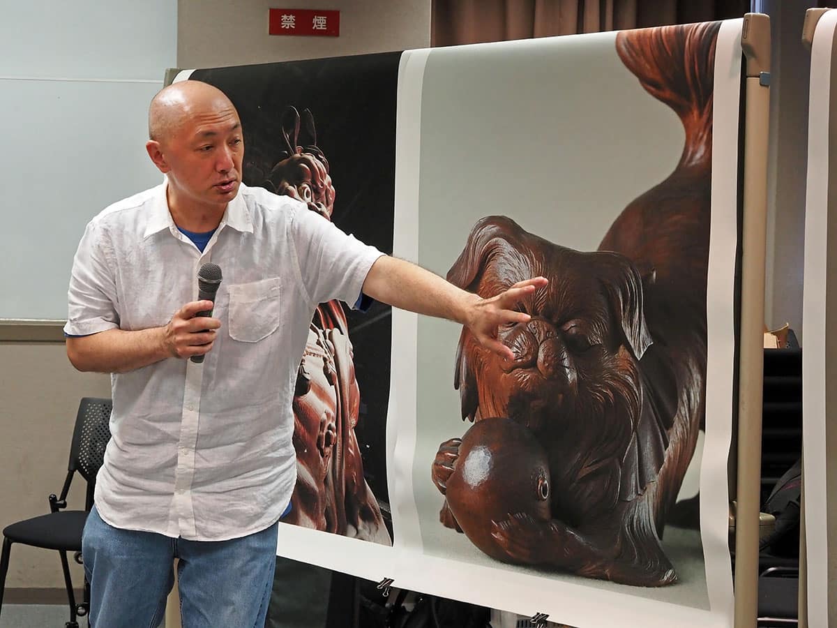なお、こういった貴重な美術品は、なかなか撮影する機会ないそうです。今述べた「老猿」の写真は、昔5×7インチの大判カメラで撮影したもの。そのフィルムをスキャンしてデジタルデータ化し、フレスコジクレーでプリントしたものになります。