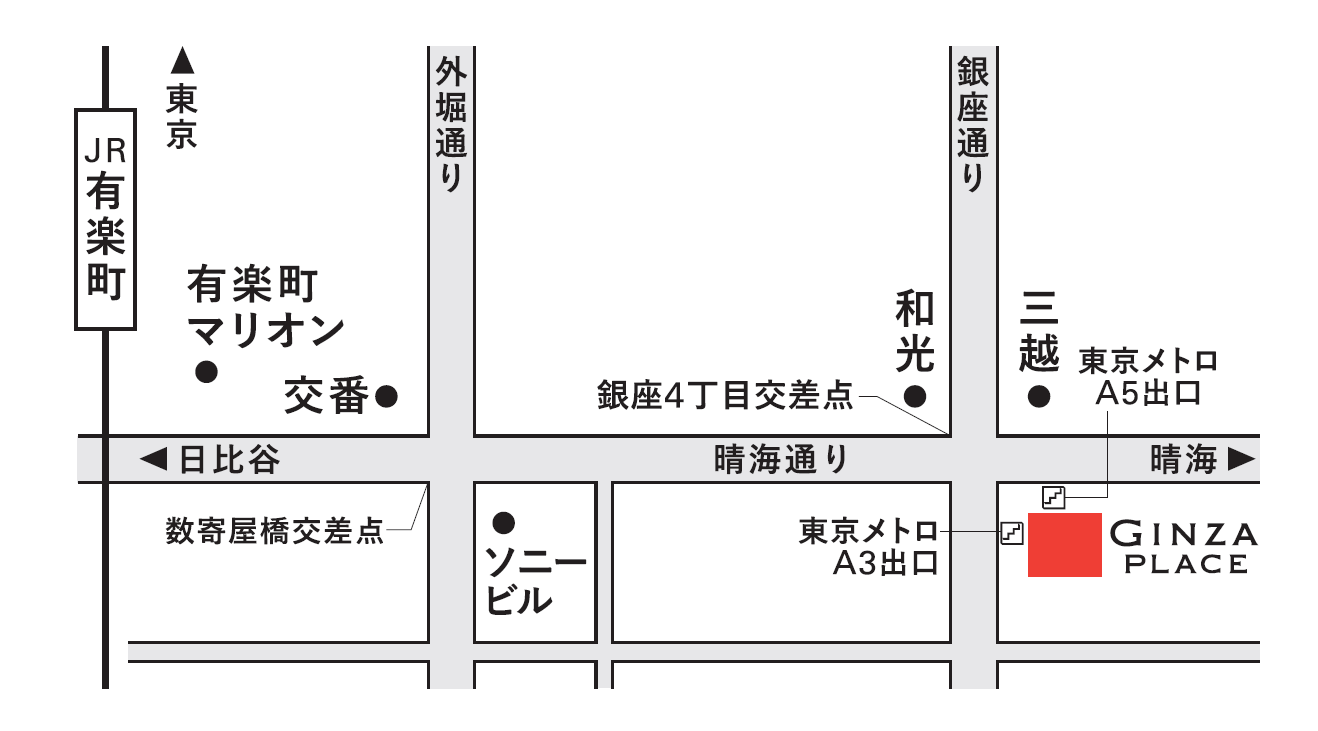 〒104-0061 東京都中央区銀座五丁目8番1号 GINZA PLACE 4階