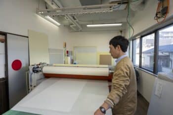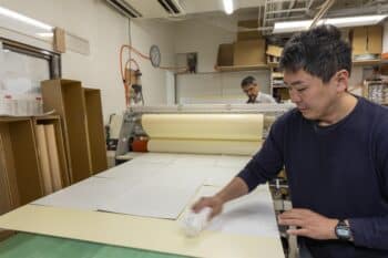 フレームマンの主な業務は展示制作品の加工、額装一式を自社で手掛けているのが売りだ。奈須田社長は「作品の現場でのライティングなども含めた展示、撤去作業も含めたトータルフィニッシュワーカーでもある」と語る。さらに「内装仕上工事業として建設業の認可も受けている。受注するのはギャラリーのみだが、新設仮設問わず壁面を設計、施工している。国土交通省認定の難燃素材に、展示物を固定していた釘を抜いても穴が塞がる特殊な不燃クロスを使った壁面づくりは写真展ならではのノウハウが必要だ」と胸を張る。