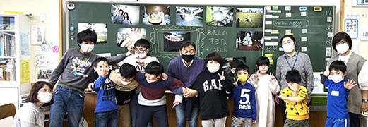 1回目の授業から、個性を強く出す児童たちと話しながらカメラの取り扱いを説明した。フィルムカメラに戸惑う児童もいたが、校庭に出て試写をした。2回目の授業では27枚のL判プリントから大伸ばしする1枚を選ぶ。個性の強い児童たち、私の勧めより自身の気に入った絵柄を選ぶ子が多かった。「大好きなおばあちゃん」「ママ」であったり、「クリスマスツリーの置物」「ゲーム機器」「サッカーボール」「犬の散歩」など、何気なく過ごす日常にカメラを持って自らの好きなモノ、出来事を捉えたり、好きな人の写真を撮ることは、日常の中から新たな認識を持つことでもあり、新たに自分自身の意識を再確認することでもあったと想像する。そのような時間を得られたことは、とても貴重な機会となったことと思う。