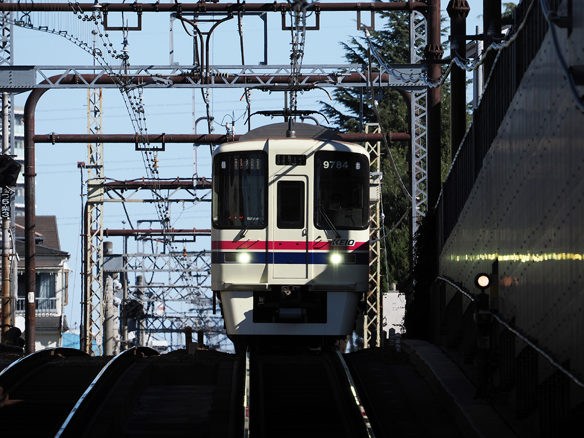 地下駅のホームの端から、隣の地上駅からこちらに向かう列車を、800mm相当の画角で切り取ってみた。暗い地下空間の先にある“小さな出入口”。そこで繰り広げられる光と影の変化に富んだ列車の様子が興味深かった。