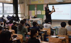 2組も1組同様素晴らしい発想力。生憎の雨天で、校内での撮影限定、しかもプライバシー保護のため人の顔はNGの限られた条件だったが、かえってその中でいかに自分だけの視点を見つけるかに集中できたように思える。2回目の発表では、それまで伸ばしたものをお互いに見せないようお願いしたため、写真を見せる度に歓声やどよめきが起こった。その反応に満更でもない笑みを浮かべ表現する喜びを実感していた。全員が自分なりの視点と工夫を、明確に意図して撮影しており、それを短い時間で明確にプレゼンする姿に感嘆。積極的に他の写真についての感想や、撮り方について質問する子も多く、限られた時間だったのが悔やまれるが、写真撮影を媒体にしたアクティブラーニングの可能性を強く感じた。(記/竹中圭樹、写真提供/学校)