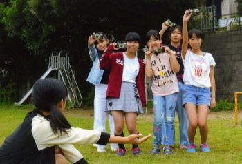 今回1回目2時限分の前半で自作のピンホールカメラや一眼レフのフィルムカメラ等を持参して「写真の写る仕組み」などの解説をしてから「写ルンです」の取り扱いの説明をして学校内での撮影に入った。児童たちは日頃スマートフォンに馴れているせいかフィルム巻き上げを忘れるとか、暗い場所でのフラッシュ不使用などが見受けられた。途中から雨がポツポツと降り出したので教室に戻り、残りフィルムは自宅に持ち帰り4~5日の間に自宅周辺や家族などを自由に撮らせる事にしたが、両親などの助言もあったのか学校内とは異なったユニークな発想での作品が出来上がった。
